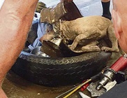 A szemétre kidobott gumikerékbe szorult egy szerencsétlen szuka feje, a tűzoltók több mint egy óra után tudták belőle kiszabadítani.